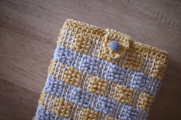노란빛과 회색빛이 함께 어우러지며 올록볼록 입체감이 돋보이는 귀엽고 따뜻한 주머니입니다.
